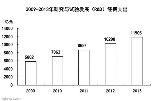 2009-2013年(nián)研究與試驗發展(R&D)經費(fèi)支出圖。&nb☆↓sp;(中國(guó)人(rén)民(mín)共和(hé•₩©)國(guó)國(guó)家(jiā)統計(jì)局/圖)
