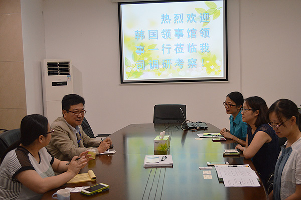 2016年(nián)6月(yuè)30日$✔(rì)下(xià)午,大(dà)韓民(mín)國(guó)駐廣州總領πγ事(shì)館領事(shì)樸柱淵一(yī)行(xíng)到(dào)公司交流考∞ ♦察,公司管理(lǐ)委員(yuán)會(huì)主任裘晖、涉外(wài)部λ↔♥負責人(rén)李婷及行(xíng)政部負責人(rén)初元參加了₹<≥(le)接待座談。座談會(huì)上(shàng),樸★÷•領事(shì)一(yī)行(xíng)聽(tīng)取了(le)公司發展情況的(de)介紹,雙方©<↕還(hái)就(jiù)公司涉外(wài)業(yè)務情況以及在韓國(guó)申請(qǐng)專✘✘₹♣利遇到(dào)的(de)問(wèn)題' >等進行(xíng)了(le)深入交流。會(huì)後,樸領事(shì)一(yī)行(xíng)參₽β觀了(le)公司辦公場(chǎng)所,對(duì)公司的>↕(de)專業(yè)部門(mén)設置、辦公環境、員(yu•®→'án)工(gōng)面貌、企業(yè)文(wén)化(huà)ε↑λ建設等方面的(de)情況予以充分(fēn)肯定。≤∞
