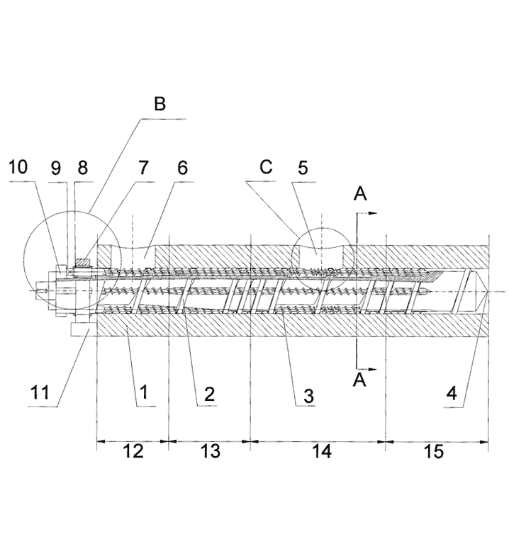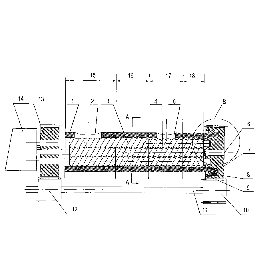 簡介說(shuō)明(míng):本發明(míng)提供一(yī)種雙轉子(zǐ)差動塑化(huà)擠出高(gāo)分δφ↕(fēn)子(zǐ)材料方法及其設備,其方法為(wèi)利用(yòng®Ω)雙轉子(zǐ)差動旋轉運動産生(shēng)的(d←∏"e)周期性塑化(huà)擠出空(kōng)γ♥'間(jiān)、剪切力場(chǎng)及拉伸力場(chǎng↓§),對(duì)物(wù)料進行(xíng)強制(z"☆ γhì)進料、分(fēn)散熔融、強化(huà)混煉塑化(huà)并擠出;其設備包括機(jī)筒、外←¶©(wài)轉子(zǐ)和(hé)內(nèi)轉子(z ≥λ↕ǐ),外(wài)轉子(zǐ)與內(nèi)轉子(zǐ)同心布置于機(jī)筒內(n♠→ ✔èi)腔中,外(wài)轉子(zǐ)與內(nèi)轉子(zǐ)的(de)∏≈公共軸線與機(jī)筒內(nèi)腔的(de)軸線重合,內(n$•≥™èi)、外(wài)轉子(zǐ)在進料口端分(♣→←fēn)别與傳動機(jī)構連接。本發明(míng)采用(yòng)雙轉子(zǐ)差動配合,大(d✘ε♥à)大(dà)提高(gāo)了(le)固體(tǐ)輸送速率,使物(φ£wù)料經曆曆程短(duǎn)、能(néng)耗低(₩←dī)、相(xiàng)态結構控制(zhì)均勻性好(hǎo),同時(≤&&≤shí),由于将正位移輸送及剪切拖曳輸送有(yǒu)機(jī)結合,使得(de)塑化(h ←↑uà)輸運的(de)穩定性高(gāo),壓力建立的(de∑©∏↓)穩定性更好(hǎo),對(duì)物(wù)料的(de)适應性更廣。